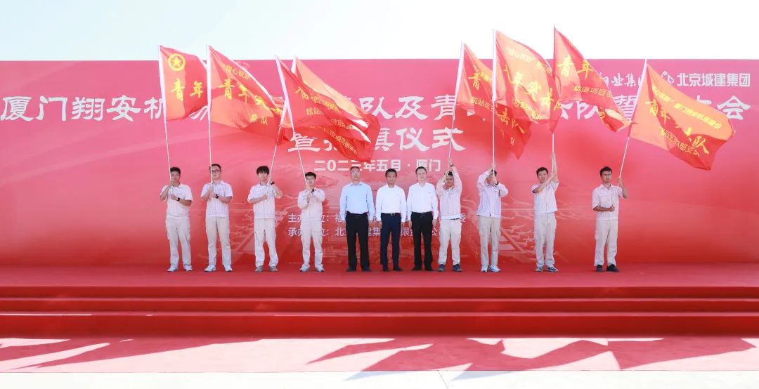 今天是“五四”青年節(jié),上午,廈門市重點(diǎn)項(xiàng)目青年突擊隊(duì)誓師活動(dòng)在建設(shè)中的廈門時(shí)代新能源電池產(chǎn)業(yè)基地舉行。 市委副書記李輝躍、副市長(zhǎng)廖華生出席活動(dòng),并為廈門市重點(diǎn)項(xiàng)目青年突擊隊(duì)授旗。 翔業(yè)集團(tuán)旗下“翔心筑新”廈門翔安機(jī)場(chǎng)建設(shè)青年突擊隊(duì)作為280支重點(diǎn)項(xiàng)目青年突擊隊(duì)代表之一,上臺(tái)接受授旗并宣誓。