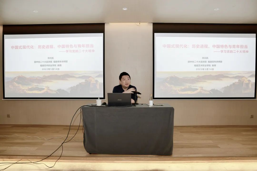 為深入開(kāi)展學(xué)習(xí)貫徹習(xí)近平新時(shí)代中國(guó)特色社會(huì)主義思想主題教育,提高翔業(yè)集團(tuán)青年員工的理論修養(yǎng)和綜合素質(zhì),激勵(lì)廣大青年做習(xí)近平新時(shí)代中國(guó)特色社會(huì)主義思想的堅(jiān)定信仰者和忠實(shí)實(shí)踐者,5月13日至14日,翔業(yè)集團(tuán)團(tuán)委舉辦2023年“青年馬克思主義者培養(yǎng)工程”培訓(xùn),邀請(qǐng)福建藝術(shù)職業(yè)學(xué)院馬克思主義學(xué)院副院長(zhǎng)、復(fù)旦大學(xué)新聞學(xué)院博士后、團(tuán)中央黨的二十大宣講團(tuán)成員鄭元?jiǎng)P教授圍繞《中國(guó)式現(xiàn)代化進(jìn)程中的青年使命》作專題教學(xué),來(lái)自集團(tuán)11地70名青年骨干參加培訓(xùn)。