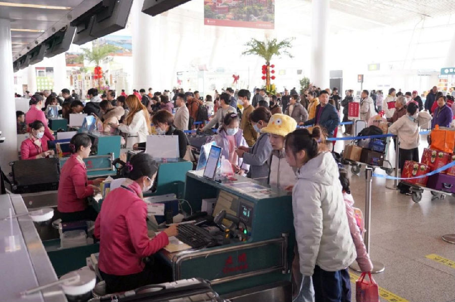 | 2024年春節(jié)8天假期被稱(chēng)為”史上最長(zhǎng)黃金周“,探親流和假期旅游客流高度疊加,社會(huì)消費(fèi)活力加速釋放,處處生機(jī)勃發(fā)。翔業(yè)集團(tuán)旗下機(jī)場(chǎng)連續(xù)創(chuàng)下單日客流量歷史新高;遍布各地的成員酒店賓客盈門(mén),持續(xù)滿(mǎn)房;購(gòu)物中心客流、銷(xiāo)售大幅上漲;福廈機(jī)場(chǎng)建設(shè)工地假期不停工,鉚足干勁向前沖。出行暢、住宿旺、消費(fèi)漲、建設(shè)忙……節(jié)日中的翔業(yè)在忙碌中見(jiàn)證社會(huì)發(fā)展的澎湃活力,迎來(lái)2024開(kāi)門(mén)紅。 2024出行暢 機(jī)場(chǎng)碼頭人潮涌動(dòng)單日客流量創(chuàng)新高 春節(jié)黃金周,廈門(mén)、福州、龍巖機(jī)場(chǎng)客流量均超過(guò)2019年同期,廈門(mén)機(jī)場(chǎng)五天單日客流量超過(guò)9萬(wàn)人次,其中2月15日(大年初六)單日客流量超過(guò)9.53萬(wàn)人次;福州機(jī)場(chǎng)連續(xù)五天單日客流量超過(guò)5萬(wàn)人次,其中2月16日(大年初七)單日客流量5.3萬(wàn)人次;福廈兩地機(jī)場(chǎng)均在黃金周期間創(chuàng)下通航以來(lái)單日旅客流量歷史新高。
