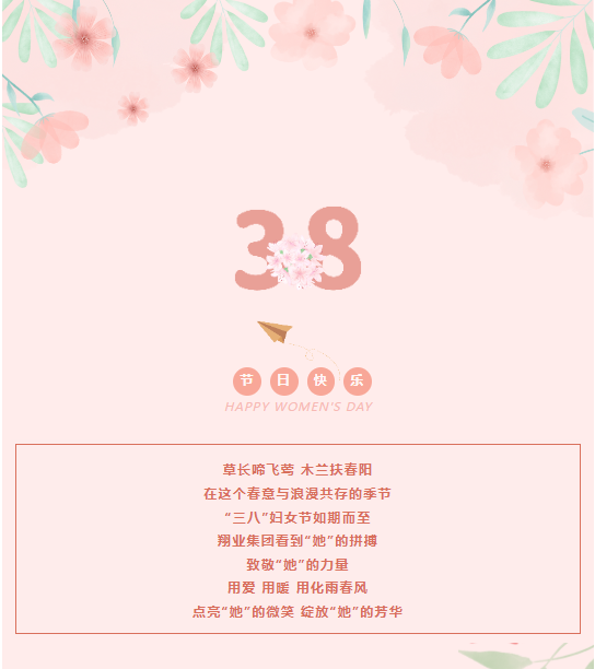 元翔龍巖機場女職工普法宣傳&“巾幗匠心逐夢·強國復興有我”主題宣講,佰翔軟件園酒店八段錦鍛煉,佰翔京華酒店“遇見更好的自己”云端普拉提,佰翔洗滌美甲志愿服務……用健康和活力點亮“她們”元氣滿滿每一天。 致敬“她”力量,巾幗綻芳華。時光因堅韌溫暖的女性力量而更加美好,歲月因花樣璀璨的奮斗女性而更加瑰麗,翔業(yè)集團祝愿所有女性“三八”國際婦女節(jié)快樂! |