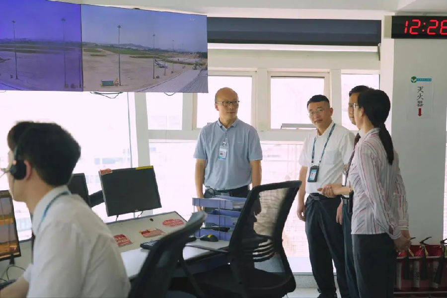5月8日,翔業(yè)集團黨委書記、董事長蘇玉榮帶隊調(diào)研福州機場,深入T2航站樓出發(fā)層、迎檢區(qū)等二期擴建工程重點區(qū)域,走進機場指揮中心、T1航站樓等運行現(xiàn)場,檢查工程建設(shè)、安全生產(chǎn)、機場運行、旅客服務(wù)、商業(yè)開發(fā)等情況,與參建單位、機場員工、候機樓商戶等深入交流,并與兆翔機場建設(shè)福州分公司干部進行座談。