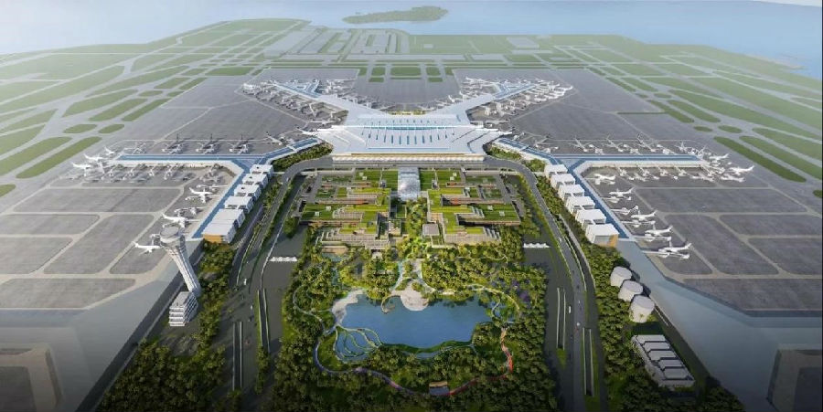 廈門翔安機場由崔愷院士領(lǐng)銜,中國建筑設(shè)計研究院與新加坡CPG集團合作設(shè)計。航站樓主樓以閩南大厝建筑和嘉庚建筑為設(shè)計要素,形成雙坡三重檐形式,展現(xiàn) “如鳥斯革、如翚斯飛”的建筑神韻。目前,廈門翔安機場航站樓已于7月1日完成閉水節(jié)點,正在開展機電及大面積精裝修樣板段施工。