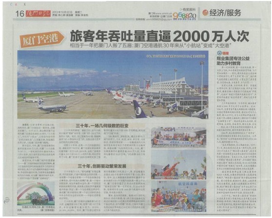 | 相當(dāng)于一年把廈門人搬了五遍;廈門空港通航30年來從“小航站”變成“大空港” 《廈門日報》頭版導(dǎo)讀: